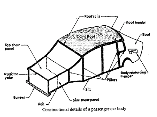 车身是所有车辆的上层结构。它可以单独构造和螺栓到底盘或制造与底盘整体(即无框架结构)。底盘和车身构成了整车。